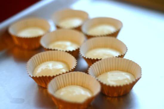 - Fill each baking cup with approximately 1 tablespoon of the cheesecake mixture. (*see tip below)