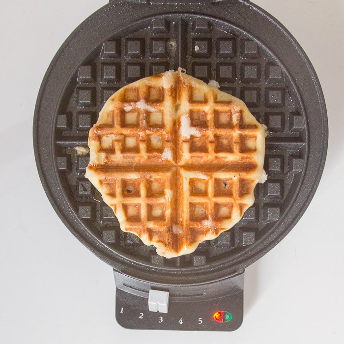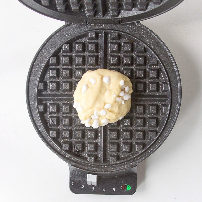 The key to cooking these waffles is to find the setting on your waffle iron that is hot enough to caramelize the sugar but not so hot that it will burn the sugar. This is going to be different on every waffle iron. My suggestion is to start at a low heat and gradually increase the temperature until you find the setting that caramelizes the sugar. The first few likely won’t caramelize, but they will still be delicious!