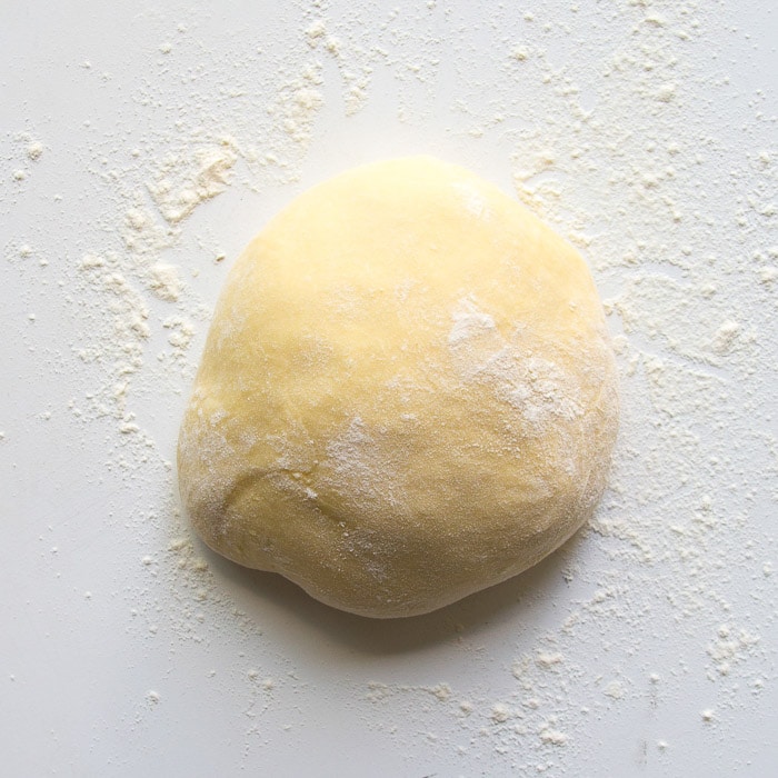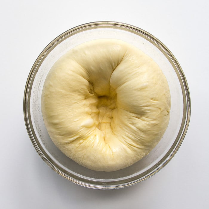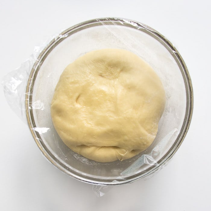 You can knead this dough by hand or use a stand mixer with a dough hook. Knead until a smooth and elastic dough forms, about 8 minutes by hand or 6 minutes at medium/high speed in the stand mixer. You may need to add a little more flour, but the dough will become less sticky as it is kneaded.